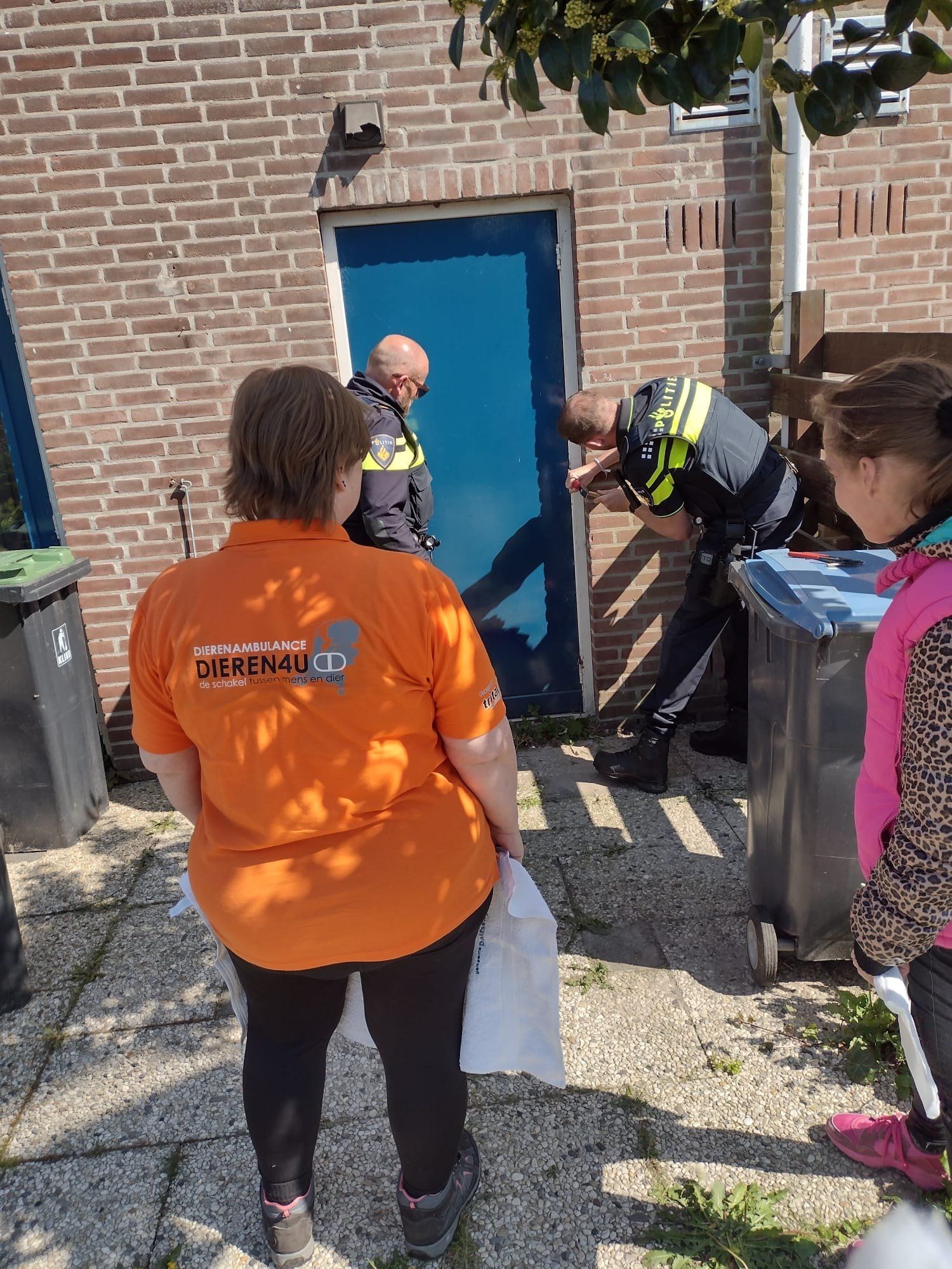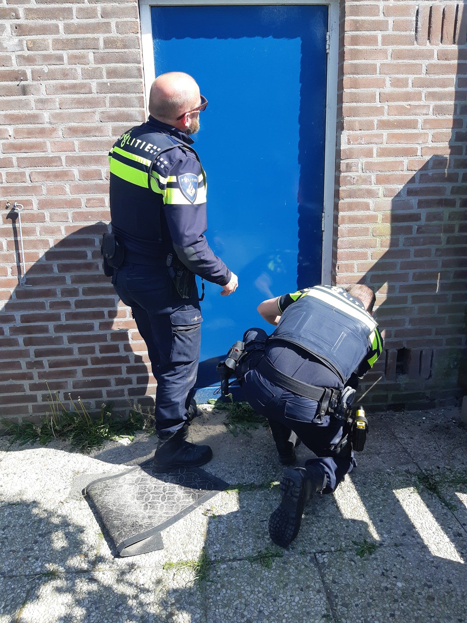 Daar aangekomen blijkt de melder oud-collega Robin te zijn. Daar wij het pand niet zomaar mogen betreden hebben wij de hulp in moeten schakelen van de politie. Eerst probeerden ze de klinken uit de deur te krijgen, echter zaten daar dievenklauwen op. Dus moesten ze met grover geschut komen.