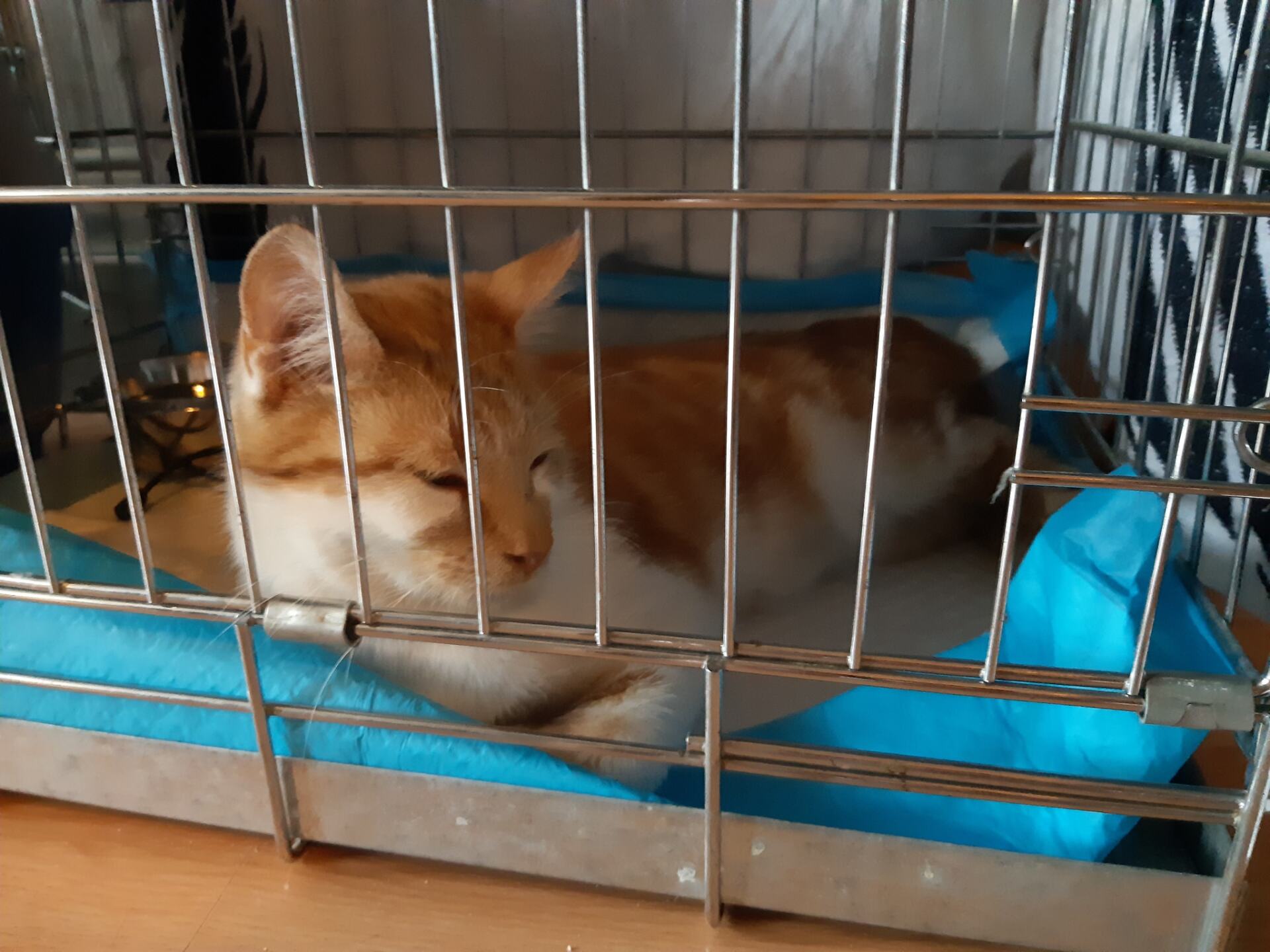 Daar er geen opvang meer open was om de kitten naar toe te brengen is de kitten bij een tijdelijke opvang ondergebracht.